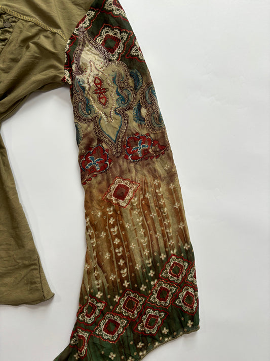 green long sleeve top with coin details