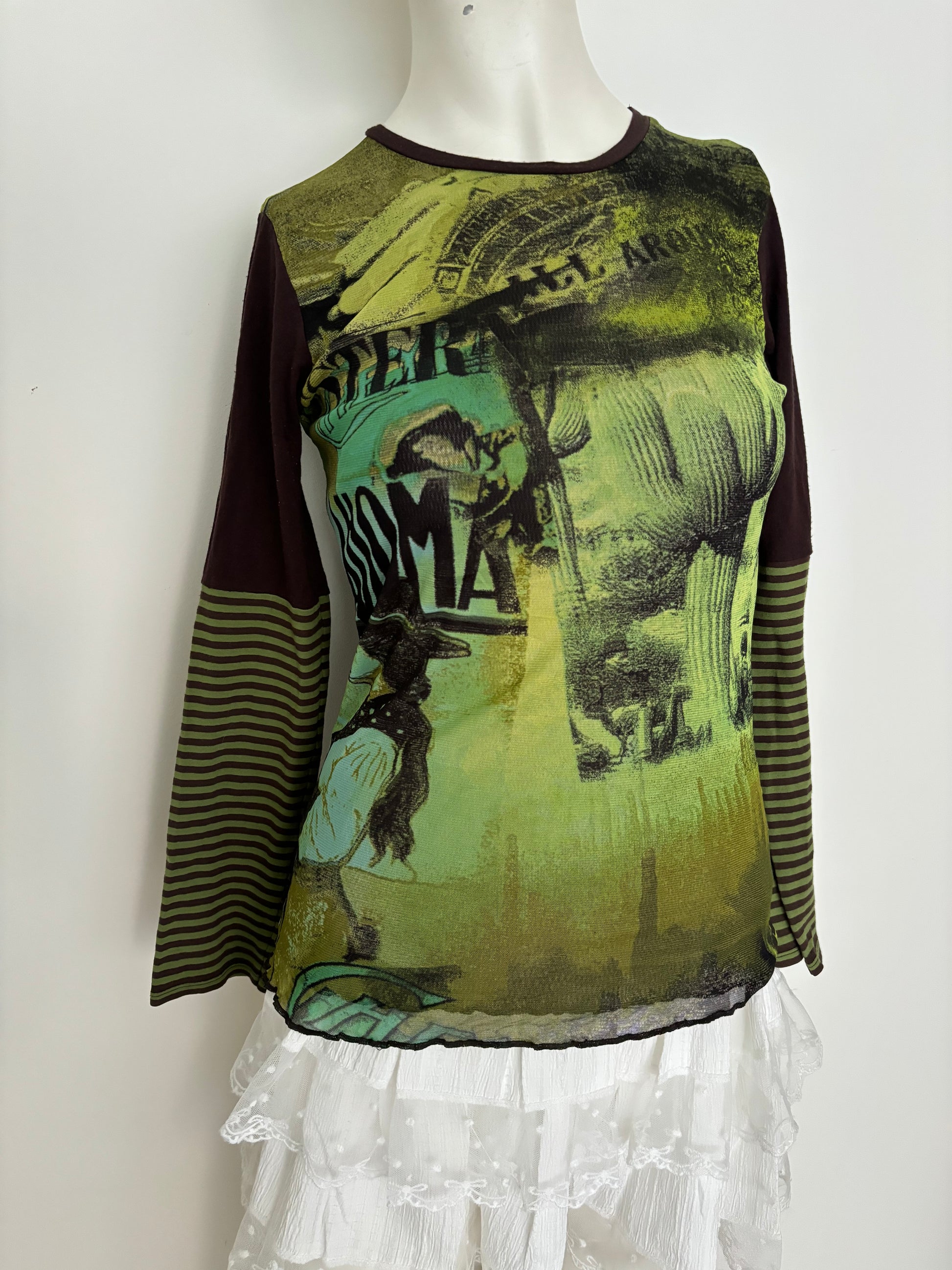 green graphic striped long sleeve