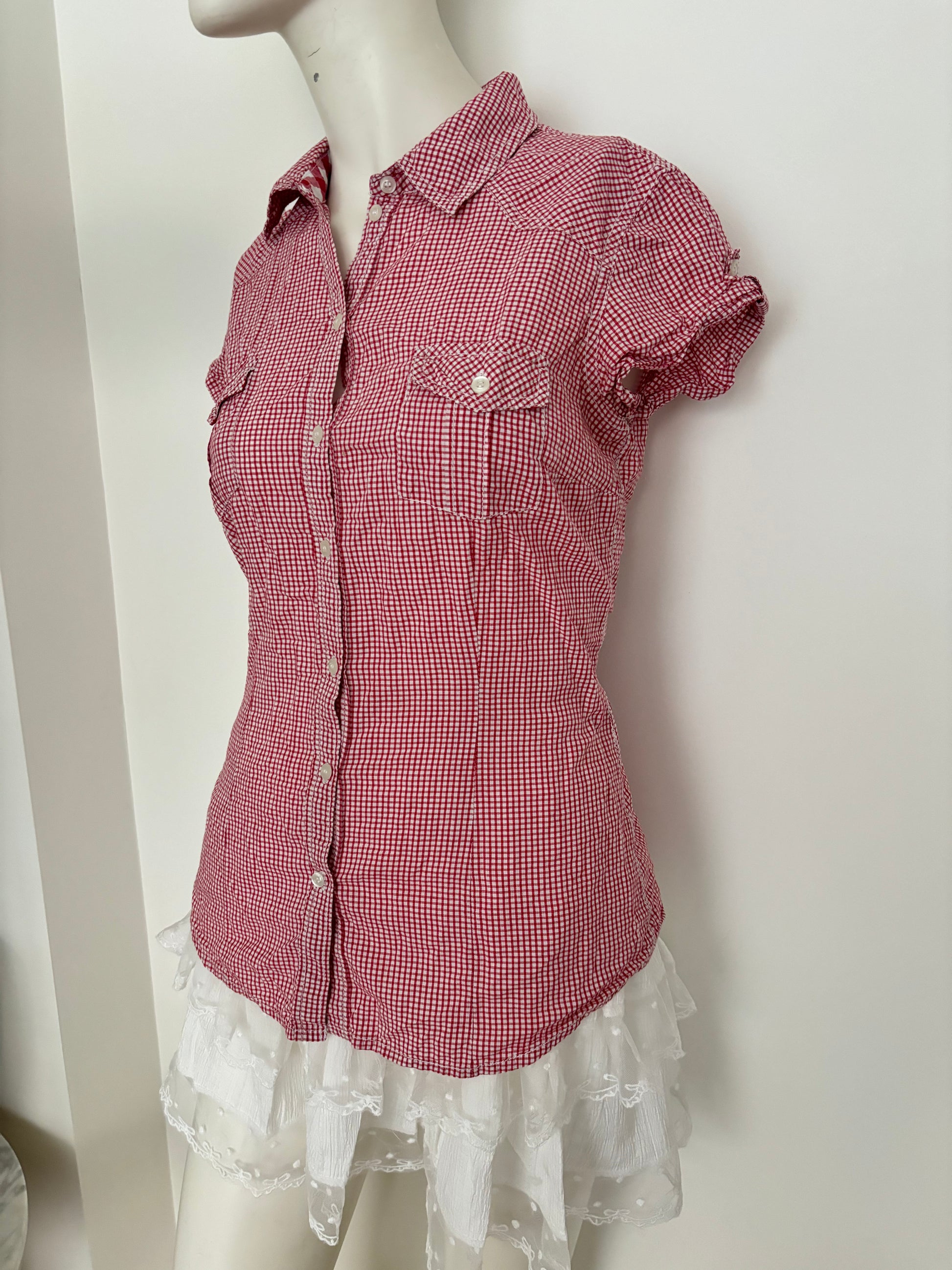 red and white blouse shirt